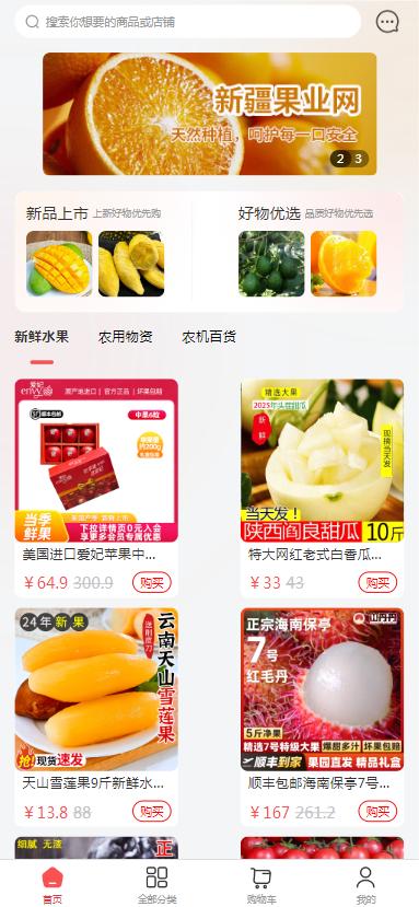 农机百货:现代化的农业生产离不开高效的农业机械。新疆果业网与多家农机厂商合作,提供从耕种到收获的全链条农机设备,以及日常生活所需的百货商品,让农业生产更加便捷高效。