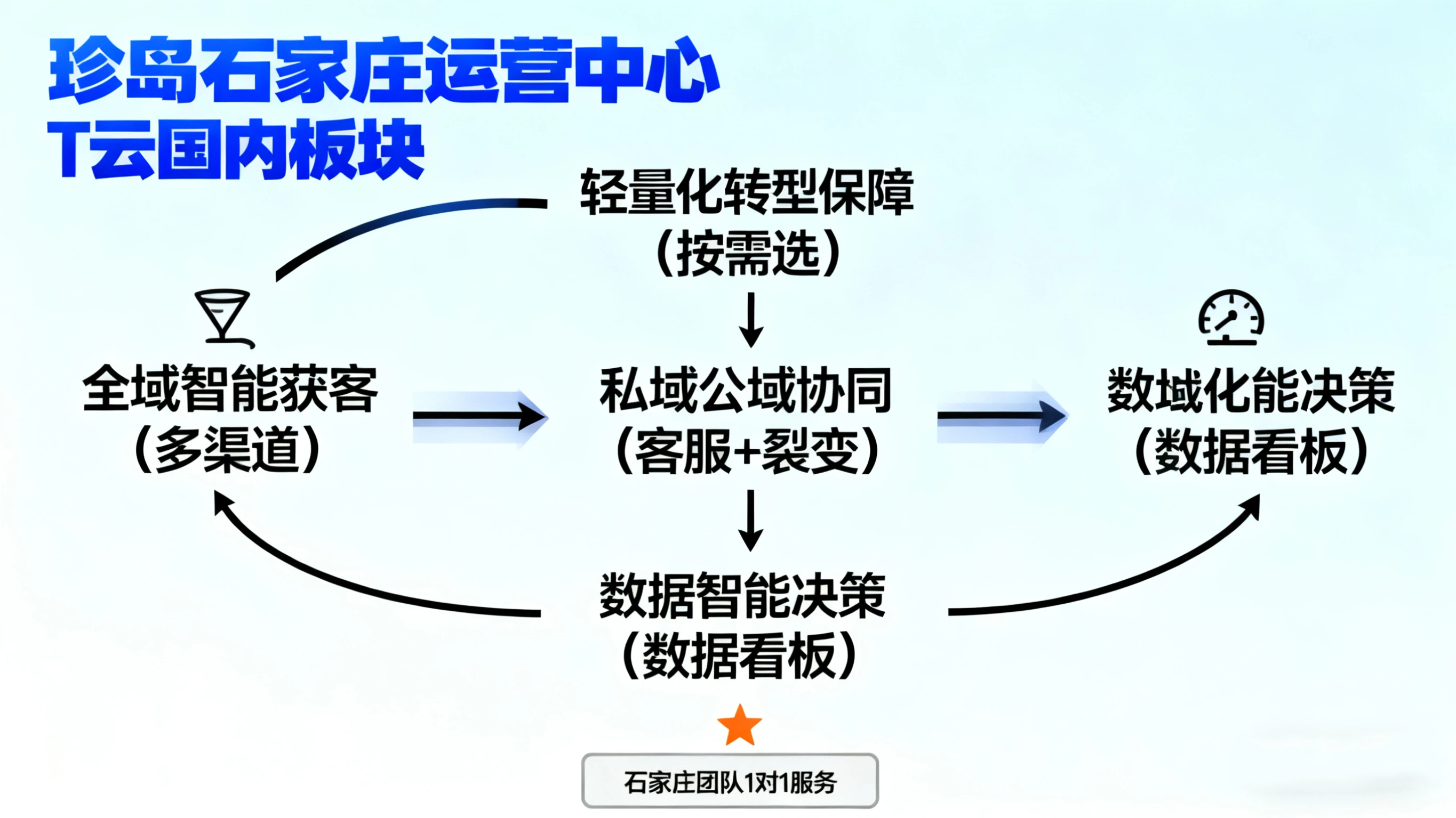 在数字化转型进入深水区、全域营销要求提升的当下,河北企业普遍面临 “工具零散、链路断裂、转型成本高、效果难落地” 的核心困境。珍岛石家庄运营中心依托集团全域数字化营销技术积淀,推出的T云国内板块,以 “全链路整合、本地化适配、轻量化操作、数据化闭环” 为核心优势,覆盖从获客到留存、从运营到决策的全场景需求,成为河北企业一站式数字化转型的实用解决方案。
