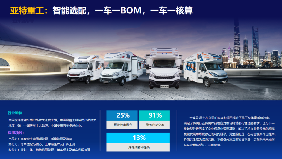 3、亚特重工的柔性制造革新:亚特重工在房车制造领域实现"一车一BOM、一车一核算"的柔性生产模式。针对每辆房车的个性化配置需求,企业通过BOM全配置化和项目化管理,既满足了客户定制需求,又实现了精准的成本控制和库存管理。