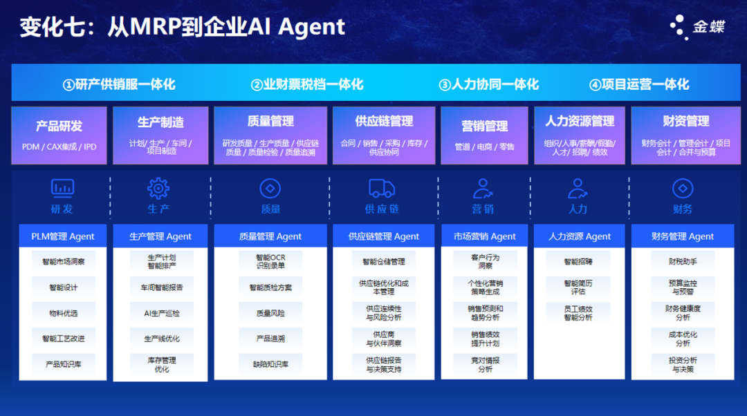 七、从MRP到企业AI Agent,打造企业智能新范式:在AI应用层面,刘卫征重点介绍了企业AI Agent的实践场景:“最靠谱的AI应用首先是对文本的处理,建立企业知识库;其次是研发Agent,帮助工程师快速检索相似产品和设计;还有智能BI助理,让管理者通过自然语言获取数据分析。”