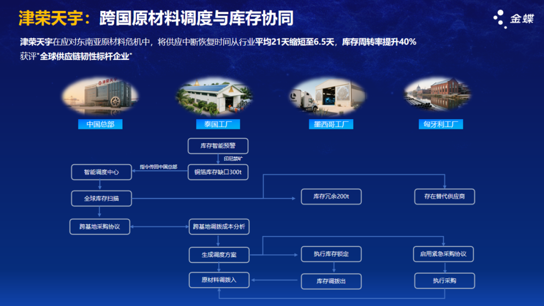 5、津荣天宇的全球化运营布局:面对东南亚材料危机,津荣天宇依托全球化运营体系,通过扫描全球库存,快速从墨西哥和匈牙利工厂调拨原材料,有效保障了泰国工厂的生产供应。这一案例展现了企业全球化运营在应对区域风险中的重要作用。