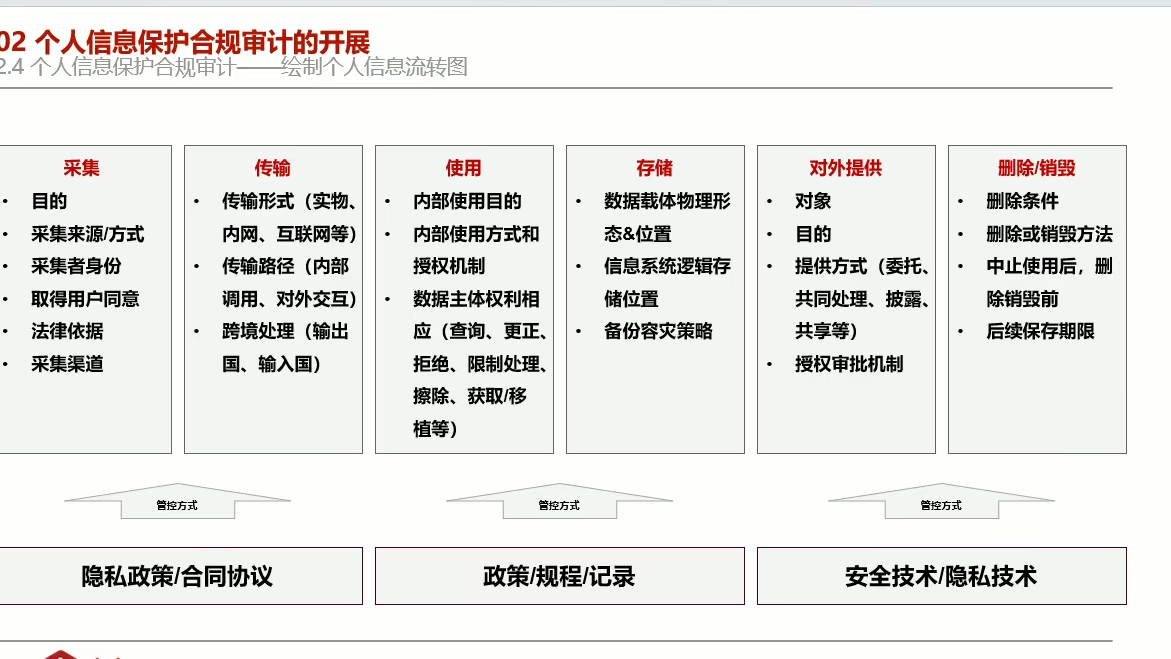 1) 明确审计目标与审计对象:与管理层进行沟通明确审计目标,明确审计工作重点。根据审计目标选定合适的审计对象(业务场景、应用形态、处理环节等),初步摸排合规情况。
