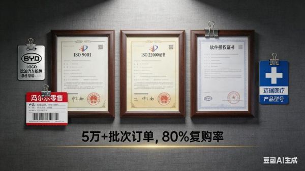 凭借过硬的条码标签模切加工实力,斯迈尔电子收获多项权威认可:通过ISO9001质量体系、ISO14001环境管理、ISO22000食品安全管理三大认证,获“一种高精度条码标签模切装置”“一种防粘连条码标签模切设备”等3项实用新型专利,自主研发的“条码标签模切质量检测系统”拿国家软件著作权(登记号:2023SR2090123)。服务客户涵盖比亚迪(汽车零部件条码标签模切加工)、沃尔玛(零售标签)、迈瑞医疗(医用标签)、顺丰(物流标签)、伊利(食品溯源标签)等巨头,累计完成5万+批次订单,复购率80%,连续6年评“标识加工优质服务商”。